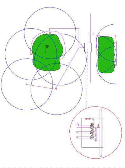 Die Dimensionierung der Rohrleitungen, der Pumpstation, so wie die Wahl der Regner und der Steuerung, passend zum Platz.