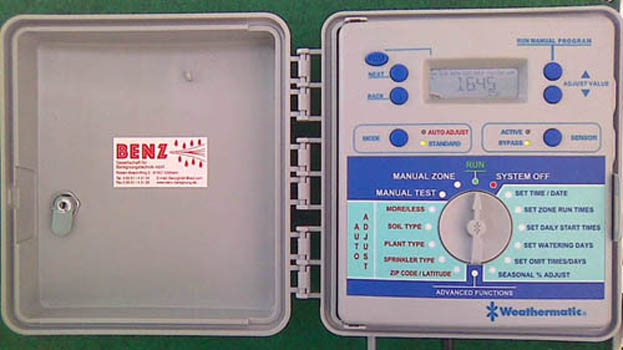 Modernste Steuergeräte zur optimalen Anpassung der Bewässerung an die Bedürfnisse des Platzes.