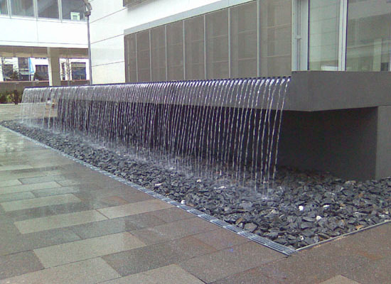 Fließendes Wasser architektonisch in Szene gesetzt, ein stimmungsvolles Bild für den Betrachter. Wir bewegen etwas,das Element Wasser, spielend und leicht durch professionelle Ausführung.