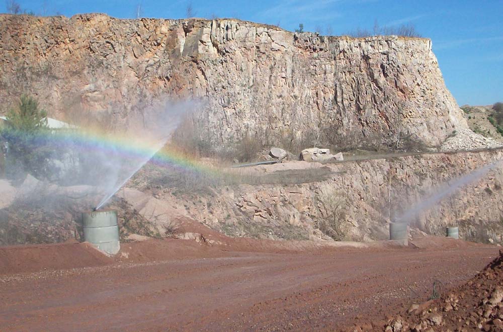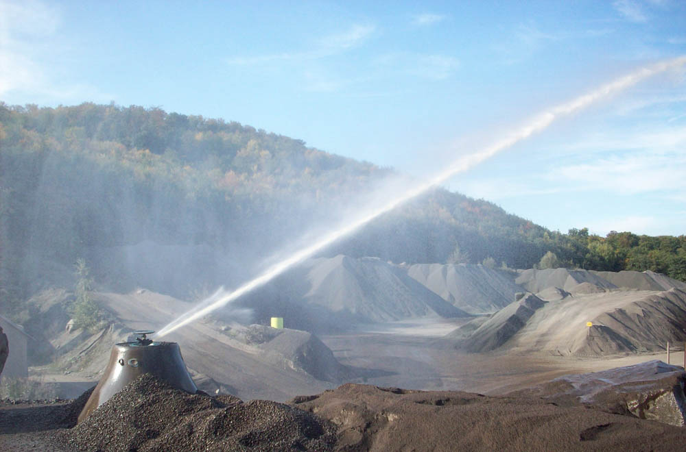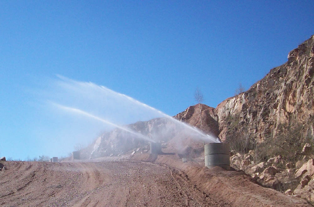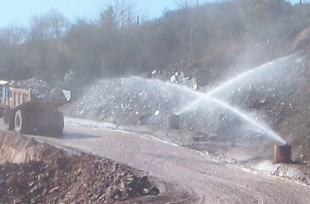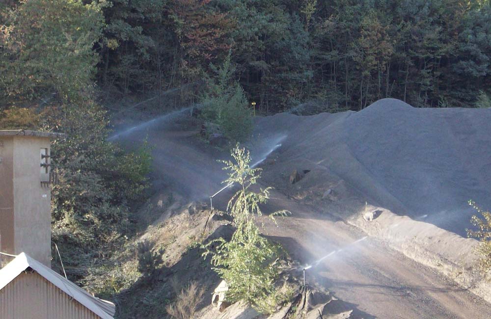 Effektive Staubbindung auf Fahrwegen und Halden durch gezielte Bewässerung mit Schmutz unempfindlichen Materialien. Schutz für Umwelt und Mitarbeiter.